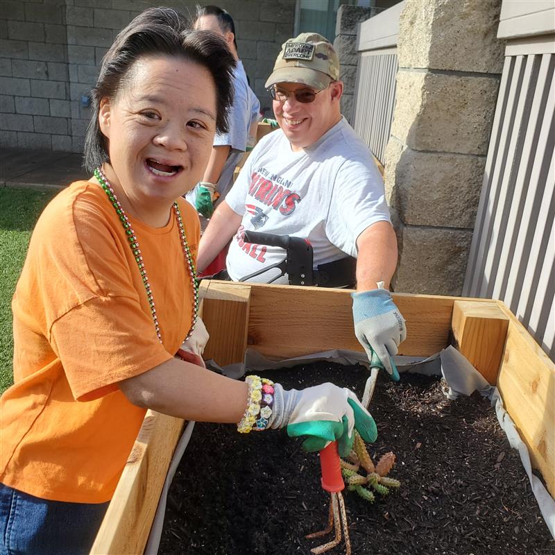 “In the courtyard where we do our daily walks, the participants go by and touch the succulents or smell the fragrant herbs that Nathan picked out,” Ella says. “With his idea, it’s not only fun but it’s really meaningful for many of our participants who love getting a variety of sensory input.”